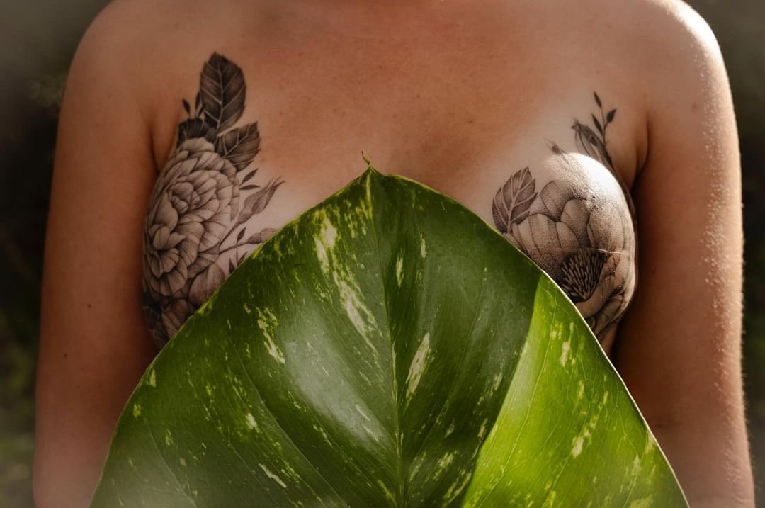 A custom tattoo intended to cover or disguise scar tissue. These tattoos can be done for scars from mastectomy surgery or reconstruction, top surgery, cesarean section, self harm, general injuries, etc.